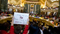 While the legislators skipped town, thousands of people came to Madison to protest the bill for a fourth day, including many teachers, who stand to be strongly affected by the bill. On Thursday, demonstrators spilled into the state's Capitol building, chanting, "This is our house" and "Forward not backward," voicing their opposition to the bill.