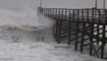 Surfers jump off pier into Irene waves