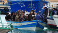 Immigrants in a boat are helped as they arrive in Lampedusa harbor off the southern Italian island on March 30, 2011.