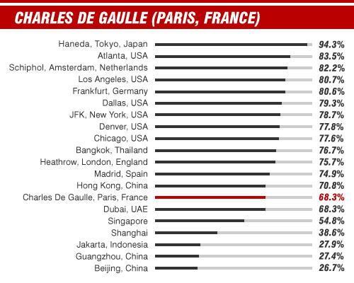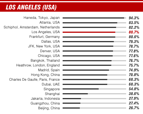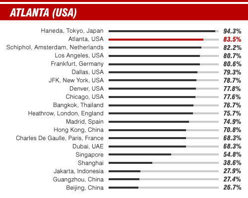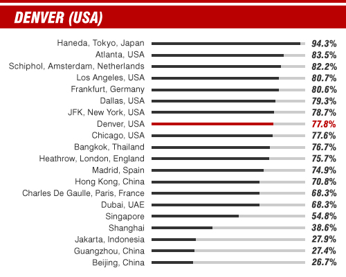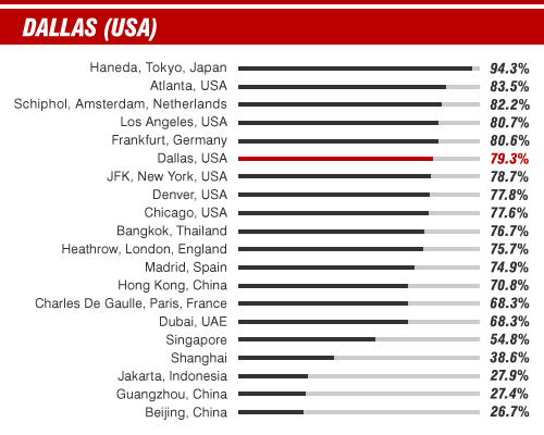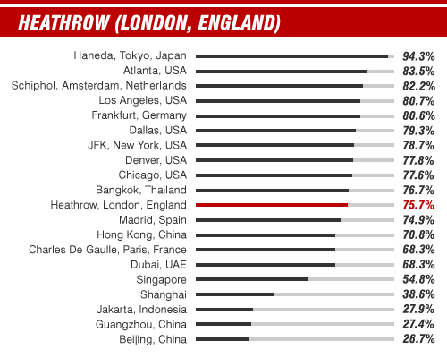 Statistics courtesy of Flight Stats taken from airport information for 2012